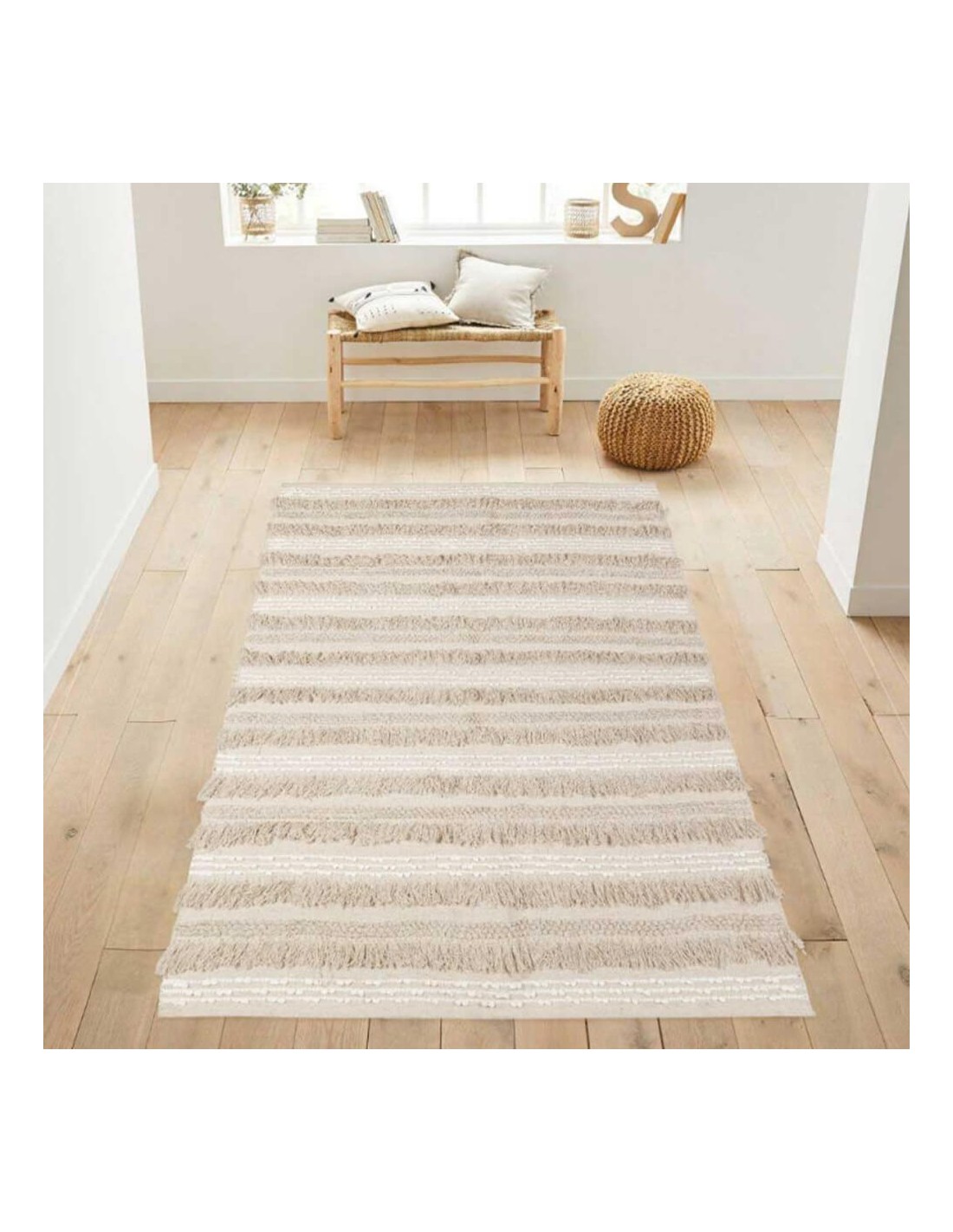 Alfombra de algodón con detalles de flecos.