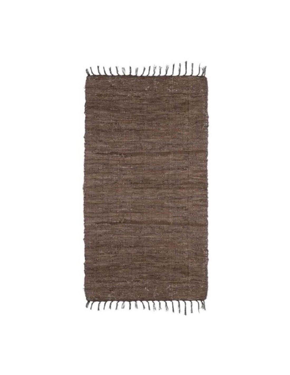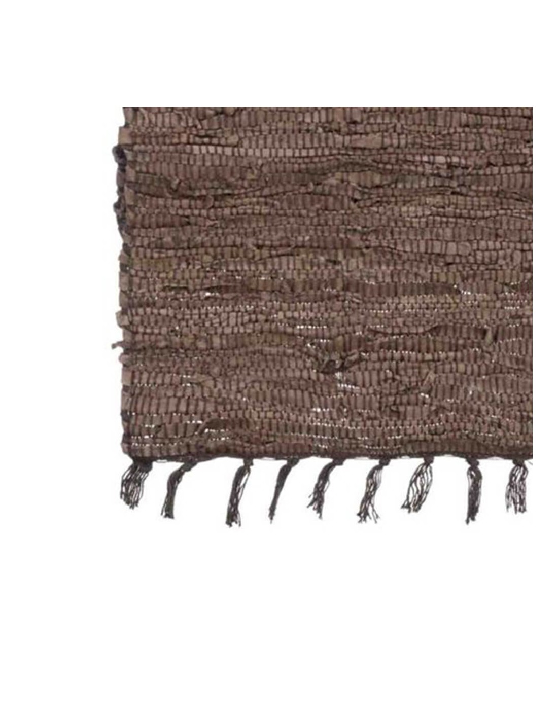 Alfombra marrón de cuero con flecos.