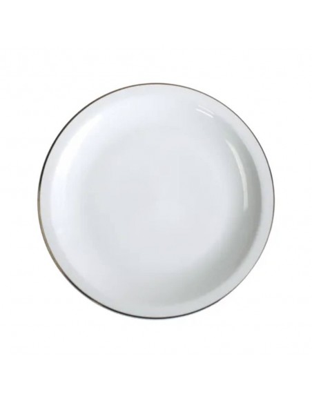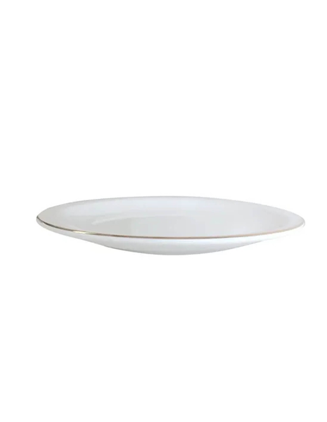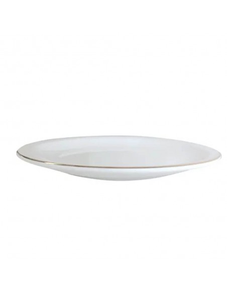 Plato de entrada de porcelana, con borde dorado.